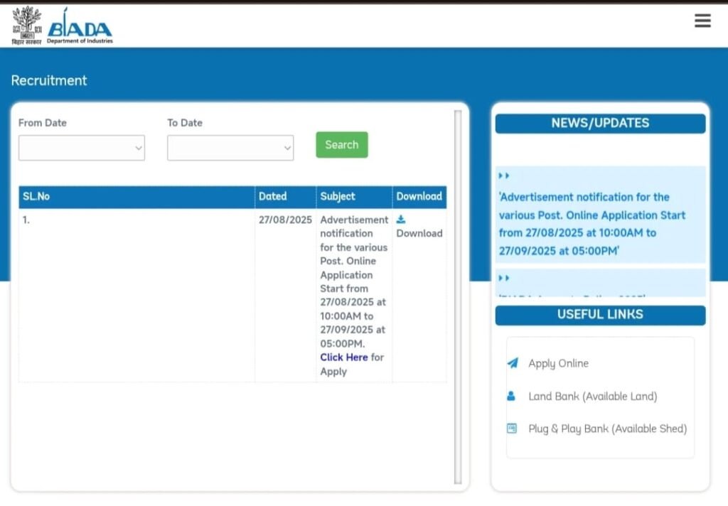 Name of the Recruitment Organization | Bihar Industrial Area Development Authority (BIADA) |